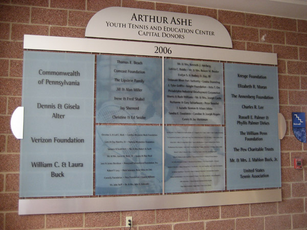 Arthur Ashe Youth Tennis and Education proudly opened the doors to their new facility complemented by a graphics program that included wayfinding, donor recognition and banners. Using the arc of the swing of the tennis racquet as a common element, SP+O added youthful colors and legacy photography to create a program that reflects the enthusiasm and energy of this non-profit organization that helps underprivileged children.