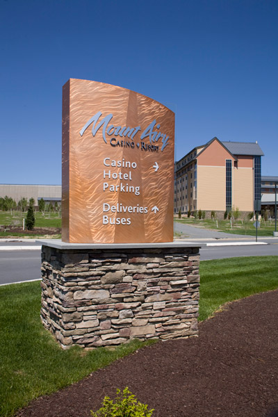 Mount Airy Casino Resort, Pennsylvania's first stand alone casino, wanted to reflect an exciting and refined but unique identity in their signage and wayfinding. This complex program included gateway and entrance monuments, interior and exterior wayfinding and identity for both the hotel, spa and casino as well as restaurant and retail signage for the Casino. Using traditional and innovative materials and coatings, SP+O united the two distinct operations while allowing each their own identity.
