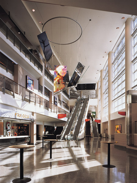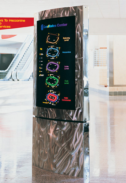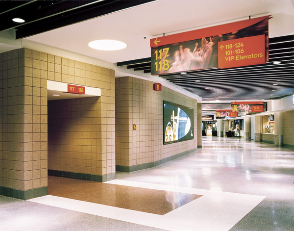 SP+O was the graphic design consultant for the CoreStates Center, now named the Wachovia Center, a 22,000 seat multipurpose arena. This 700,000 plus square foot facility has five public concourses including three for premium seating and two for public seating. SP+O was responsible for the development of the graphic identity for the CoreStates Complex (CoreStates Center and adjacent arena, the CoreStates Spectrum), wayfinding and arena graphics including the Flyers ice and 76ers basketball court.