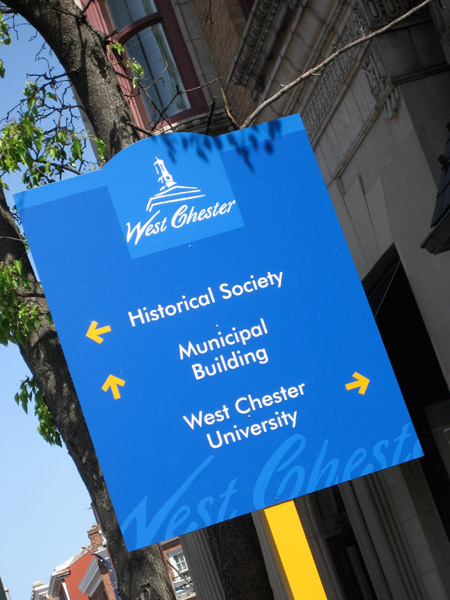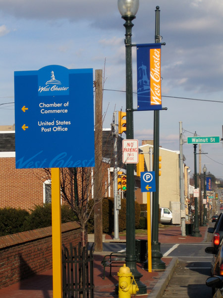 SP+O designed the signage for the wayfinding system for West Chester, PA, which will be implemented soon. Bright, welcoming colors and simple, easy-to-read graphics make the signs easy to follow from car or on foot. The colors are consistent with existing marketing materials for West Chester, adding to the overall branding of the town. The wayfinding system will ease traffic flow through the heart of West Chester’s shopping district, while beautifying the town itself.
